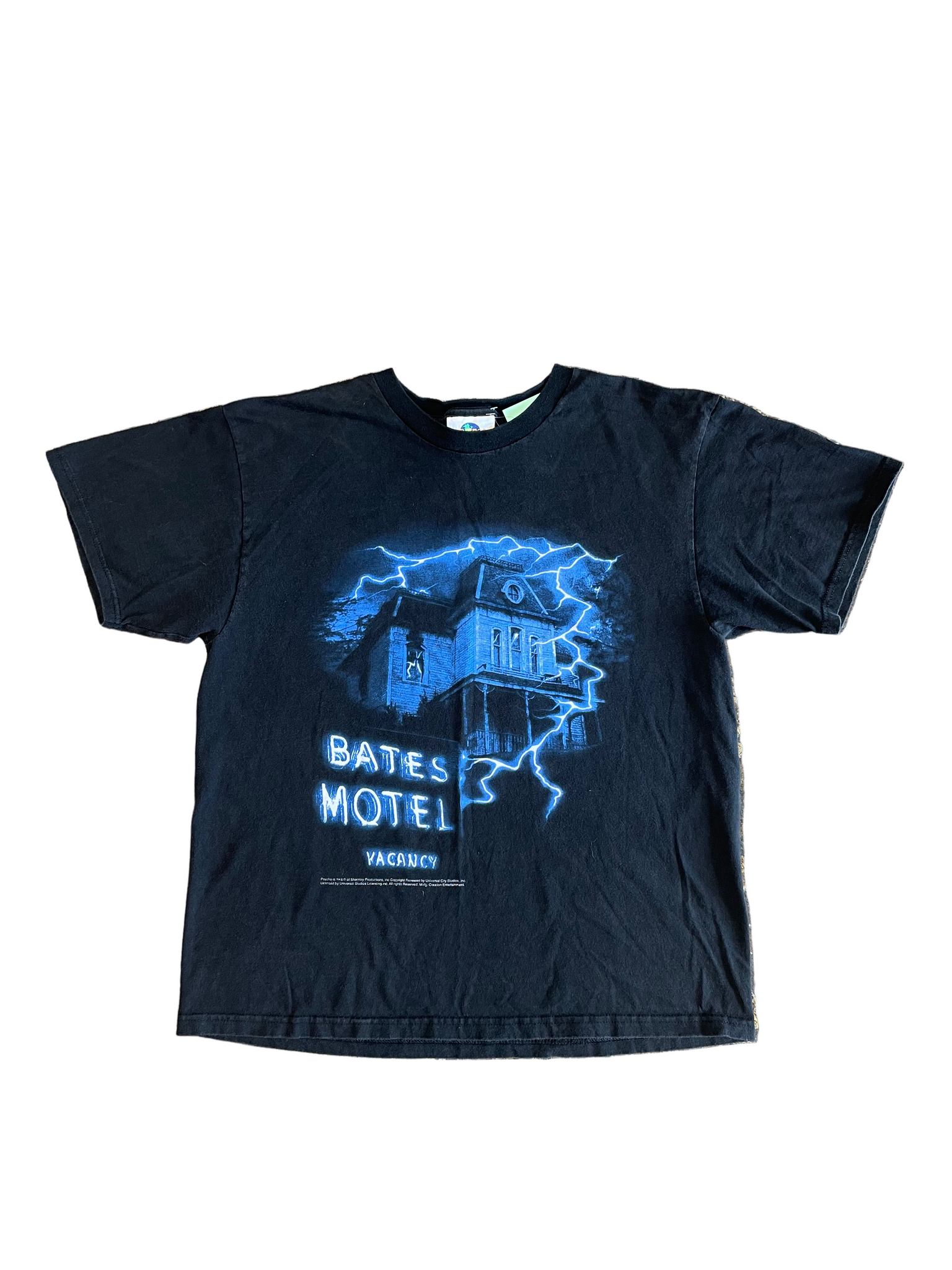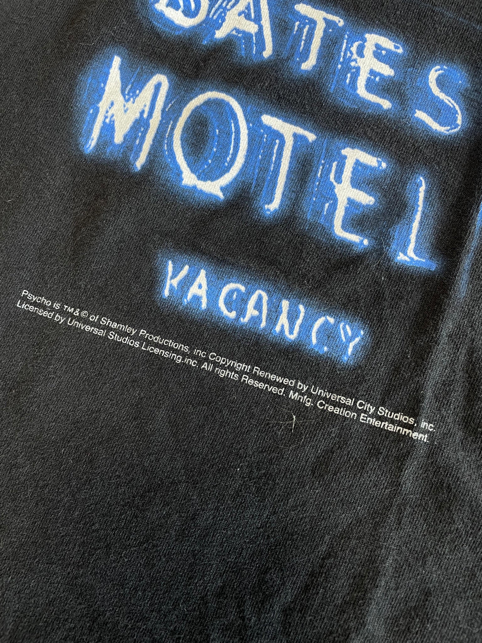 Vintage 1990s Universal Studios Psycho T-shirt with a print of the Bates Motel on the front. Size Large, Made in Mexico. Very good condition.