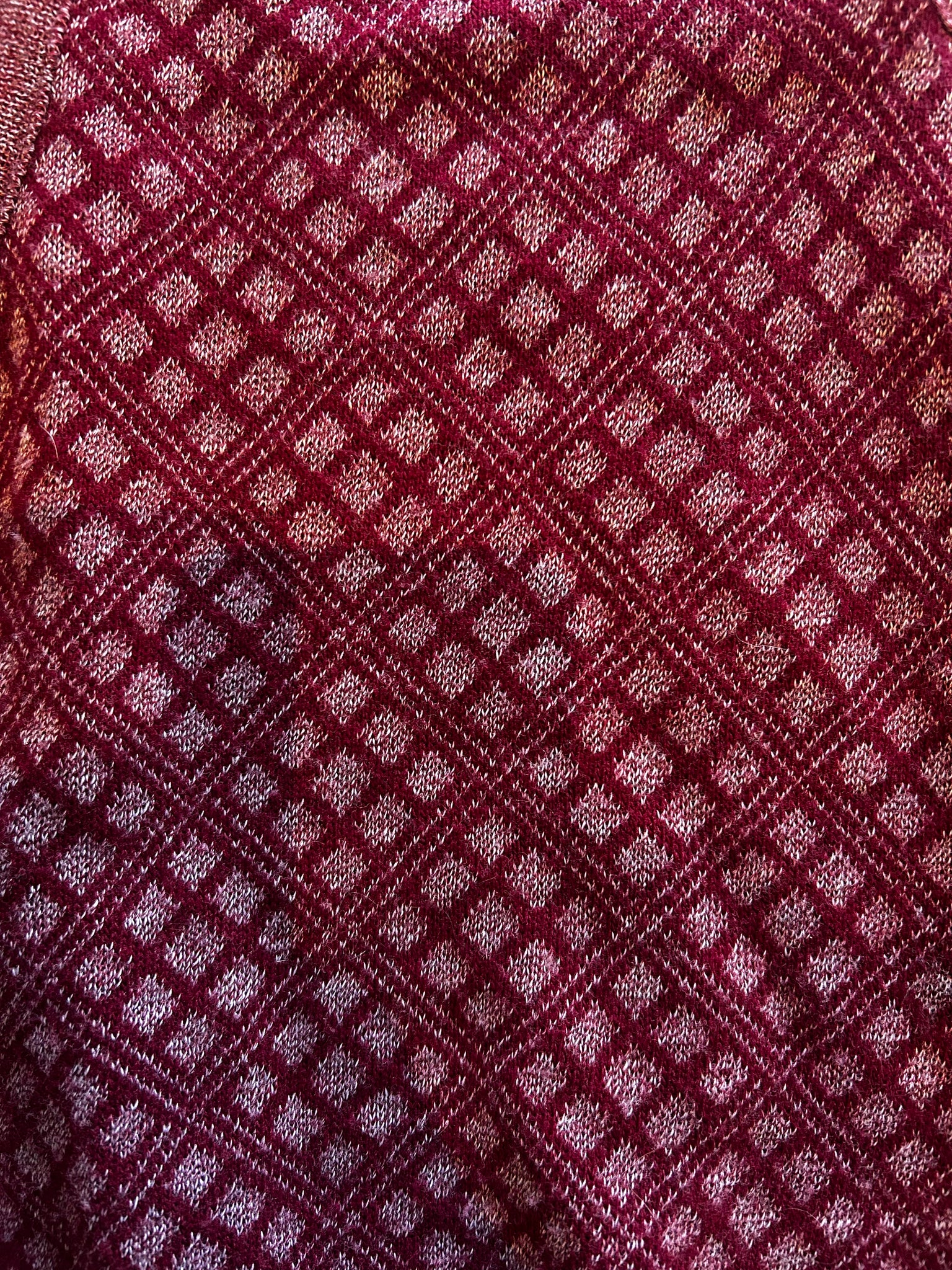 Vintage sweater vest with a red diamond print. 60% acrylic 40% polyester. Good condition