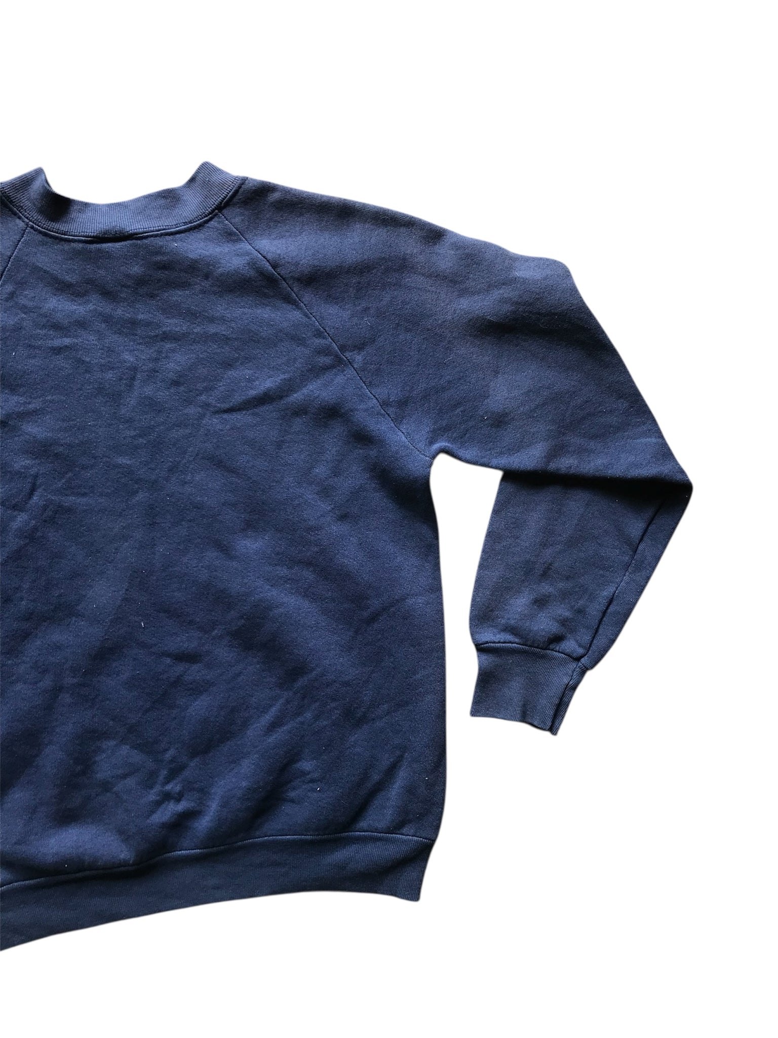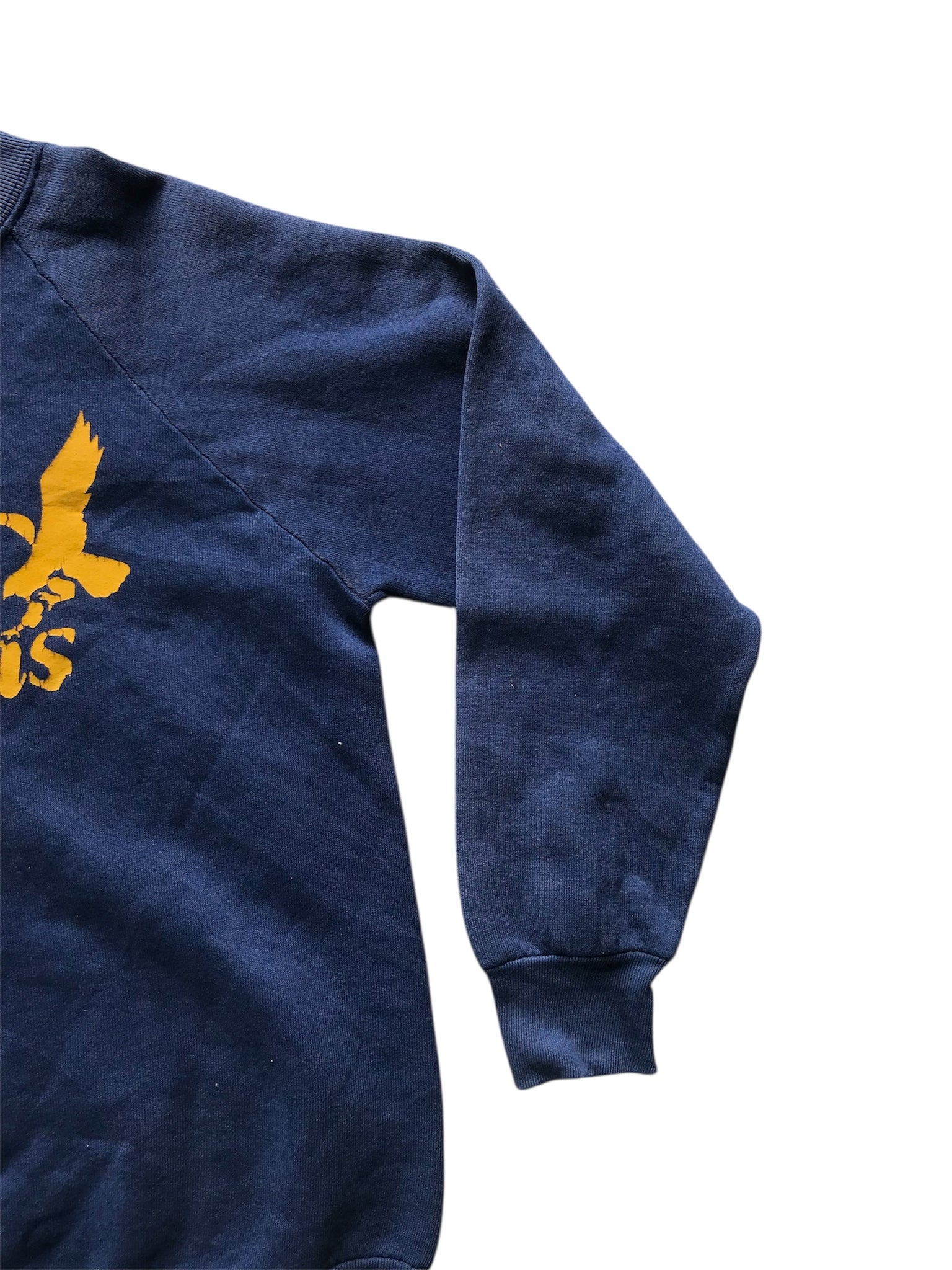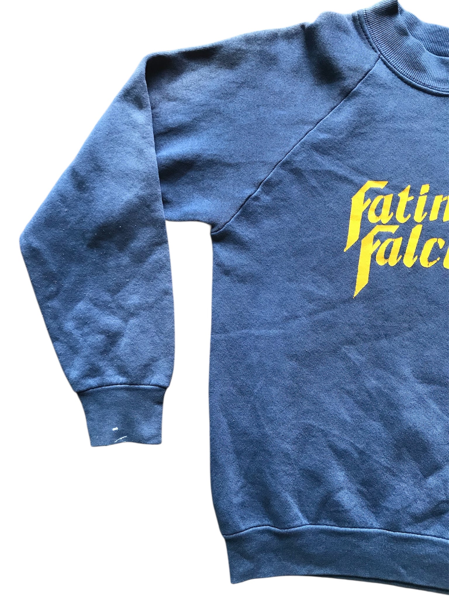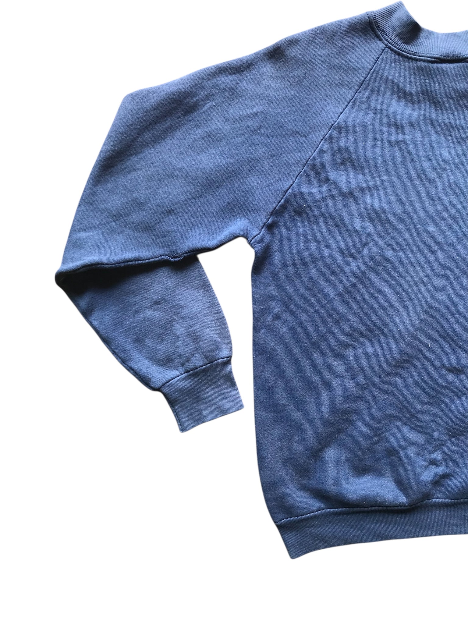 good condition, sun-fading, stain on right cuff, small hole in right sleeve