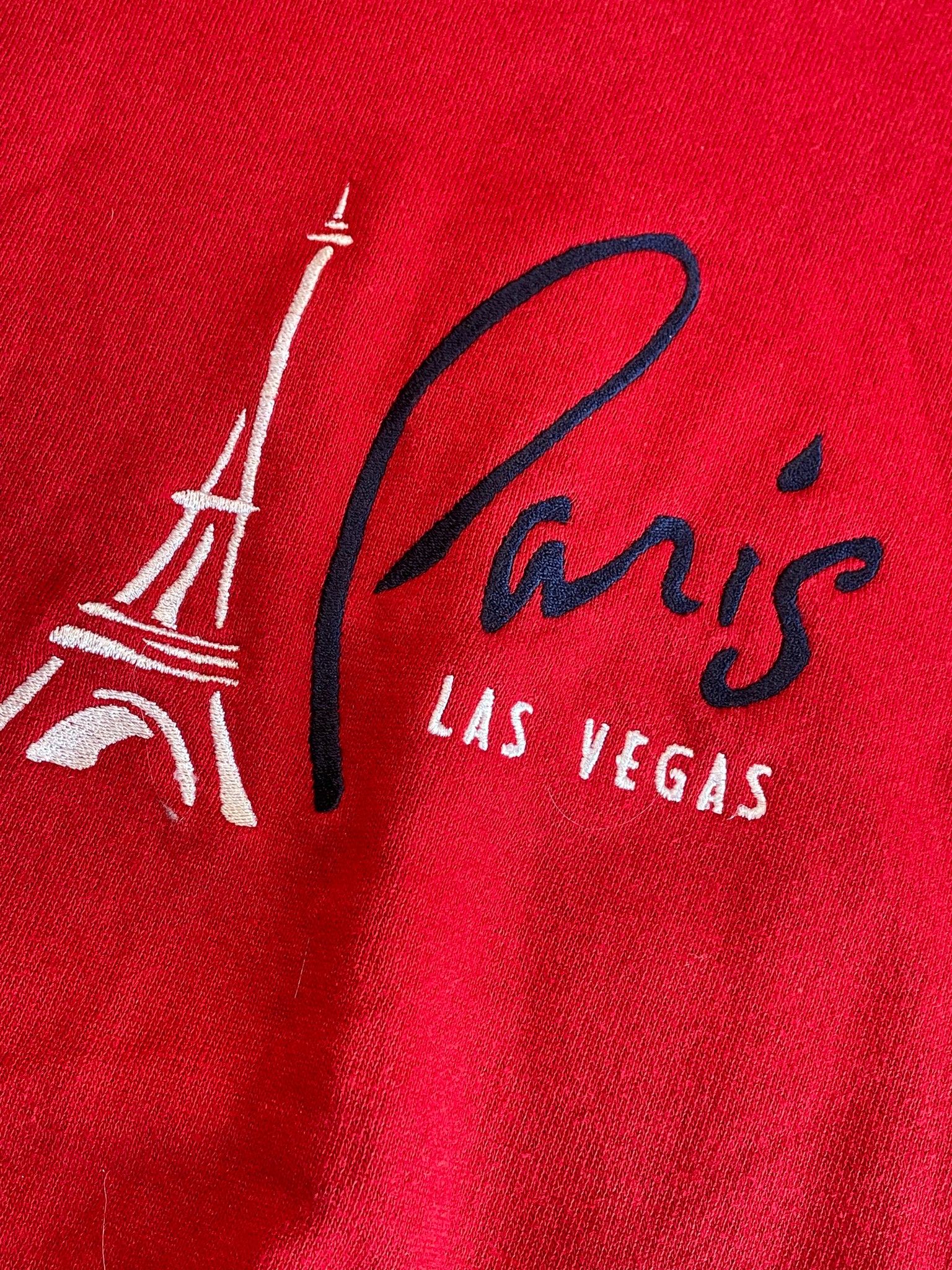 Vintage Jerzees crewneck sweatshirt with Paris Las Vegas embroidery on the front. Size XL, Made in Mexico. Slight pilling on one sleeve, otherwise good condition.