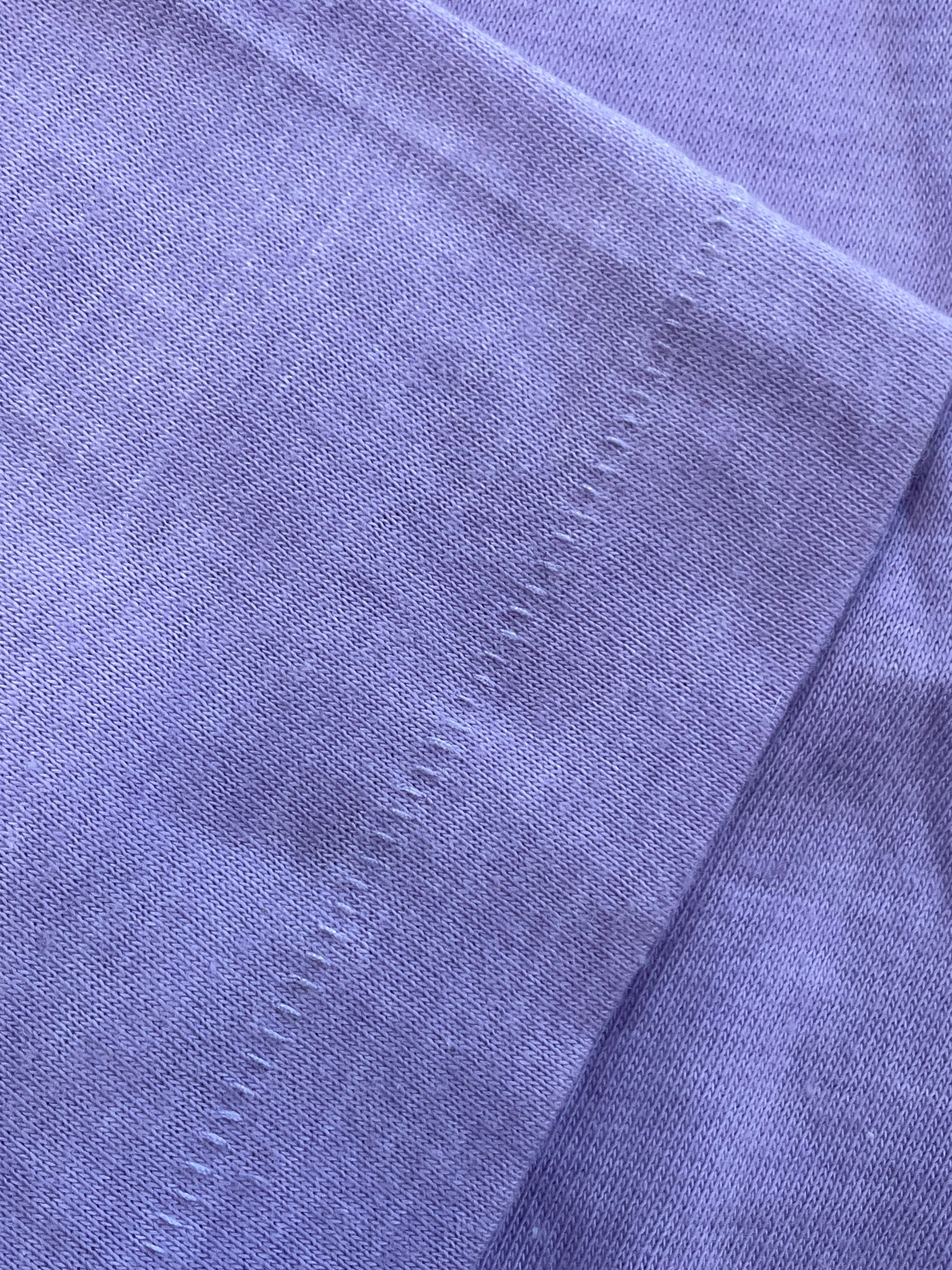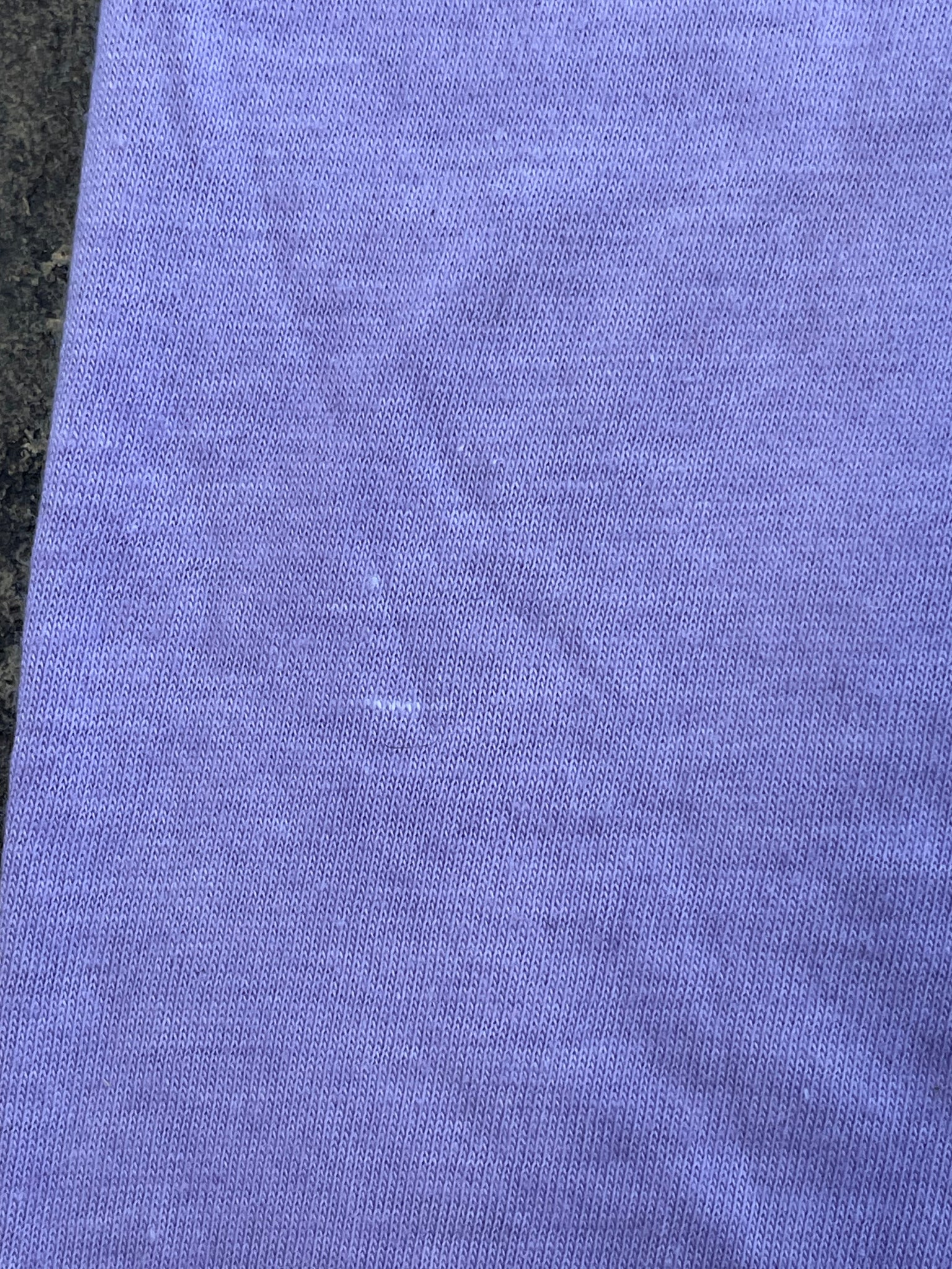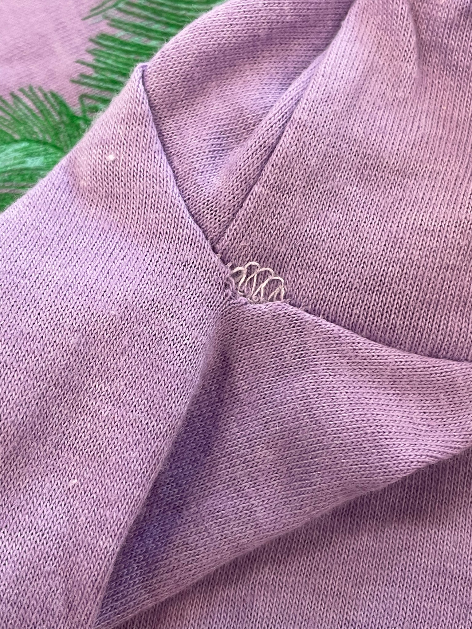 Vintage 1970s-80s Florida "Lauderdale By The Sea" souvenir T-shirt. Light lavender/lilac purple color; The color in person is most accurate to the first picture. Large print of palm trees and "Florida" on the front of the tee, and "Lauderdale by the Sea" on one shoulder. Size vintage medium, made in the USA. Very good condition besides the tiny hole in one pit, and a tiny bleach stain.