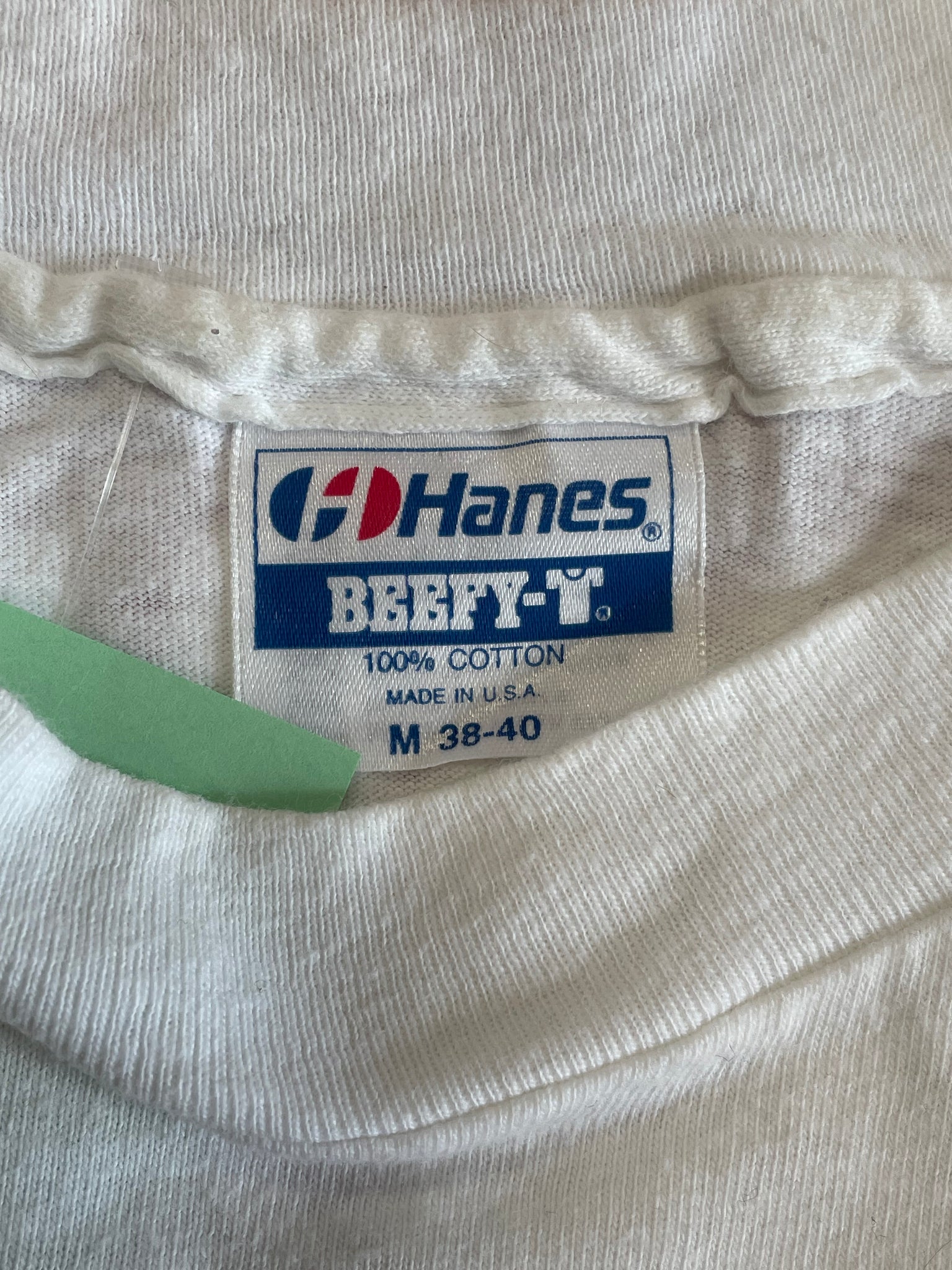 Vintage single-stitched SMU beach patrol frat T-shirt, with raunchy text on front and back. A couple of small stains on the front and sleeve. Size vintage M, made in the USA.