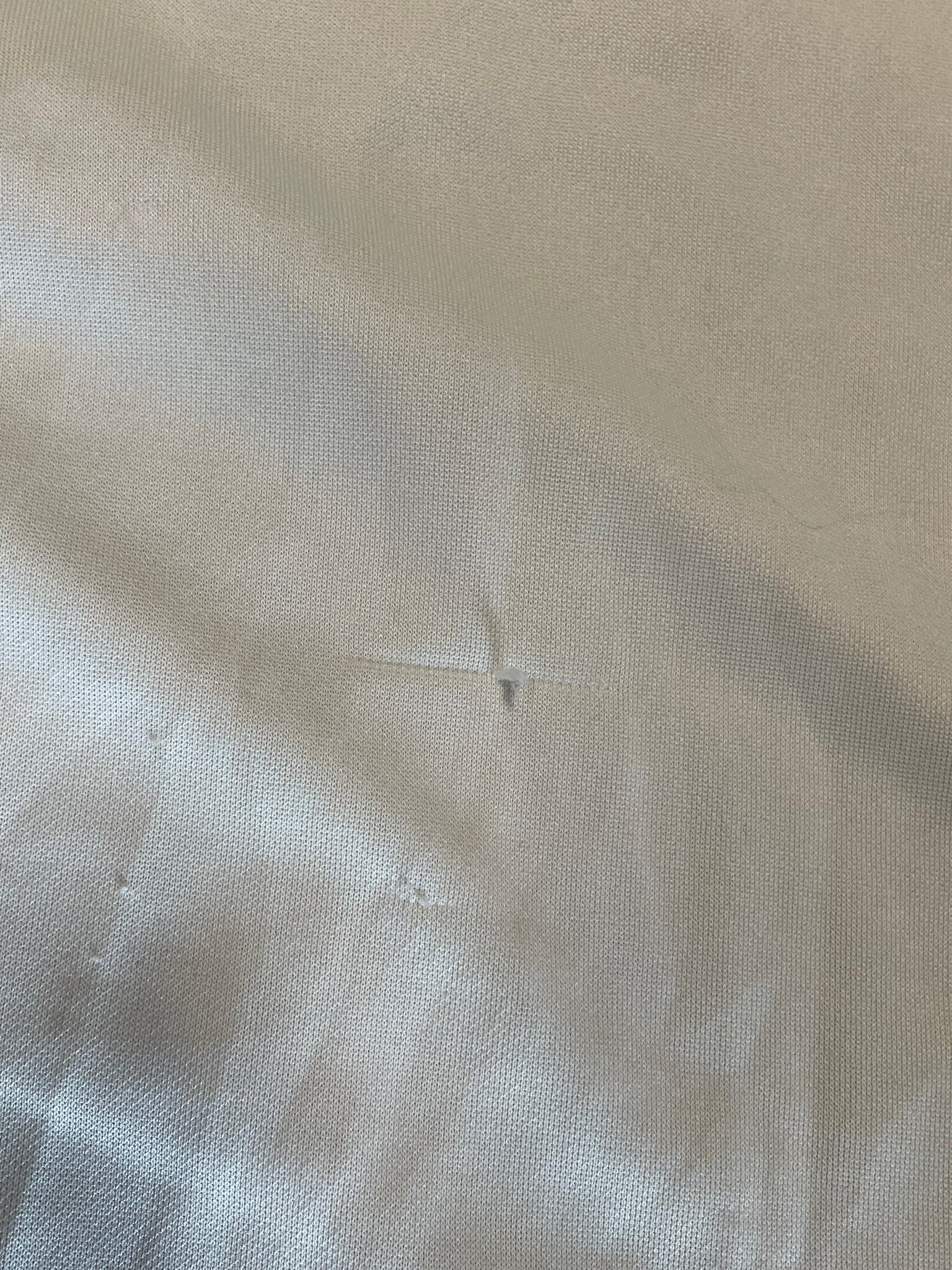 Imperfections: pinholes, pulled threads/warped weave, loose threads, pictured.