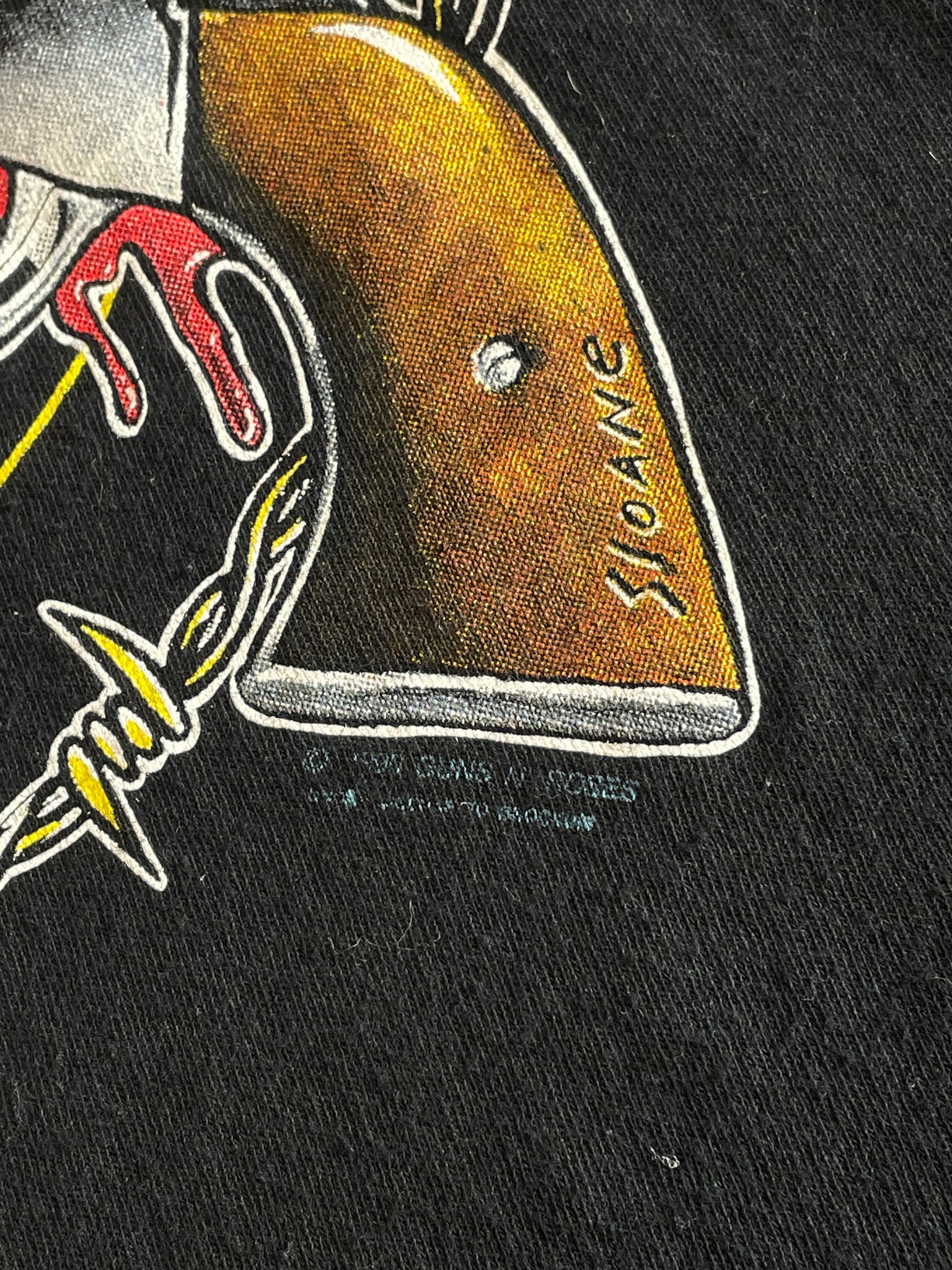 Vintage Guns N Roses licensed band T-shirt from 1990. Front and back prints, but the back was painted on by the previous owner (paint addition "Gun Roses" on large letters on back), otherwise very good condition. Size XL, Made in the USA. Feels like deadstock condition, besides the added paint on the back. Single stitched sleeves, double stitched hem.